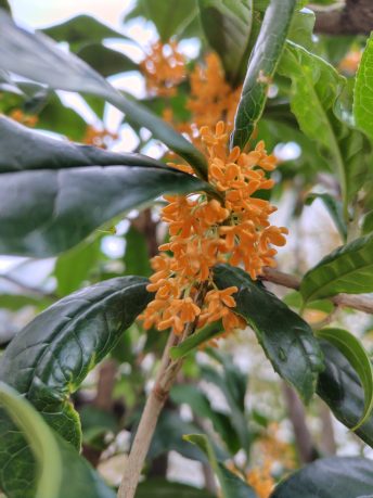 季節を生み出す日差しが秋の植物たちにもたらす変化の一つに、人間にとって秋を楽しむ上でも忘れられない現象に樹々の葉の紅葉があります。気象情報で秋の到来を求めていた10月中旬、我が家の庭先でも、秋の到来を証拠付ける紅葉の姿を目にすることができました。玄関先の花壇に植えてある赤く紅葉したコキアの存在に気づいたからです。我が家にも秋が訪れていると知り、裏庭でも秋の気配を探すと金木犀の黄色い花も発見し、この日は「ちいさい秋 みつけた」と、家族で大喜びをしました。