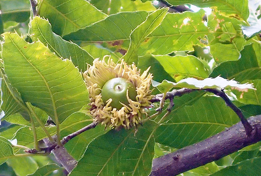 クヌギのどんぐりが大きくなってきました。まだ緑色をしていますが、これから熟していきます。