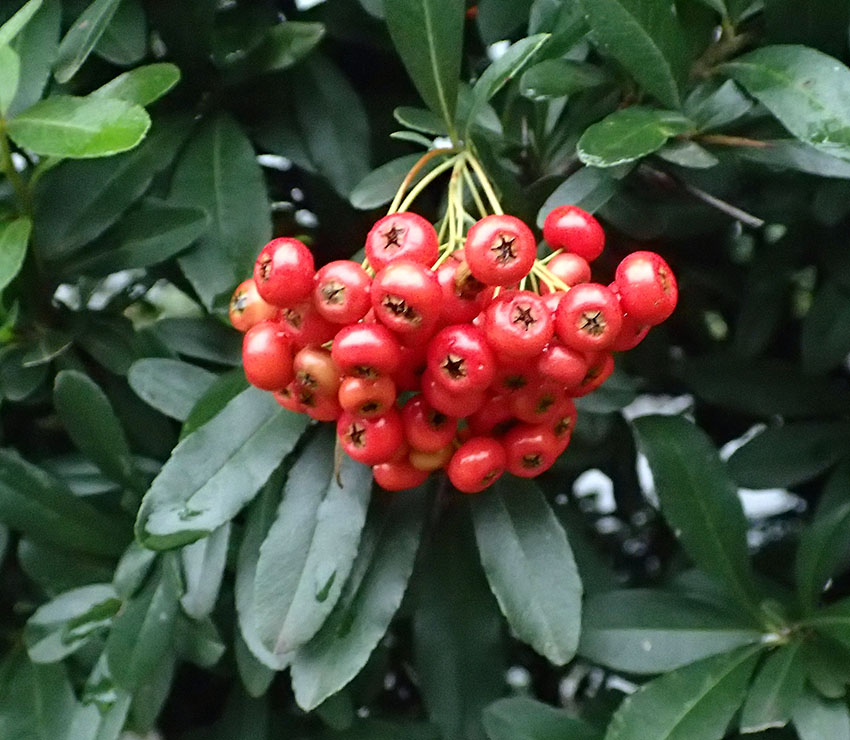 今日の館庭(2025/10/19) 2025/10/19 おうちで科学館見学, 館庭, いきもの ピラカンサの実が赤く色づいてきました。おいしそうに見えますが、年明けごろに他の木の実がなくなると、ようやく鳥が食べにきます。