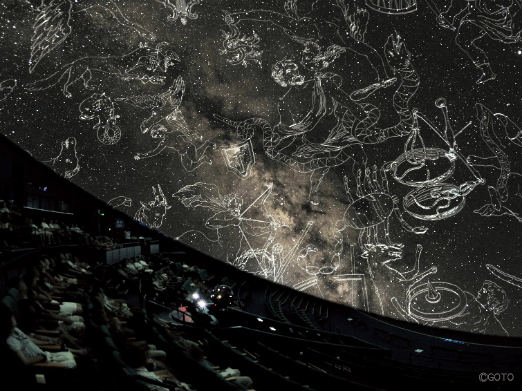当日の天文現象や季節の星座を、時には情緒的に、時にはユーモアを交えながら、わかりやすくお話しします。なお、投映機「CHIRONⅡ(ケイロンⅡ)」は、世界最多1億4000万個を超える星々を投映するプラネタリウムとして世界一に認定されています。直径27.5mの大型ドームスクリーンに微細な星の輝きが広がり、奥行き感のあるリアルな星空をお楽しみいただけます。