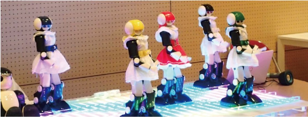 昨年発表された「アイドロイド5」。話題の楽曲に合わせて、アイドル型ロボット5体がダンスパフォーマンスを披露します。専用のLEDステージとダンスが連動した演出も見どころです。