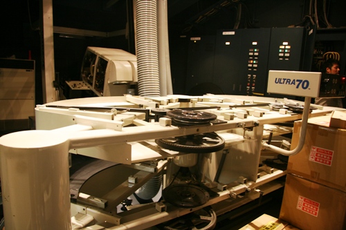 70mmフィルム映写機ウルトラ70の様子を外から見ることが出来た映写室も今は簡易の壁が出来て見ることができなくなってしまいましたが特別に映写室内に入らせてもらい、部品が外されている状況の写真も撮ることができました。ドーム内からウルトラ70のレンズを見た方もいらっしゃるかもしれませんが、レンズが外れていたためレンズのあった場所から映写室にあるウルトラ70は今どのようになっているのか写真を撮りました。工事関係者の方が今日写真を撮るならここ!というイチオシの貴重な写真です。今後もこのロクトリポートでサイエンスエッグリニューアル工事の様子をお知らせしますのでお楽しみに!!