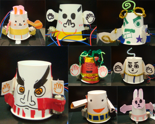 「すもうロボット」はモーター、紙コップ、牛乳パックで作るので、