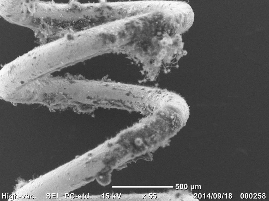 フィラメントの中央部分の白熱していたところはなにもなく、つるんとしていました。
