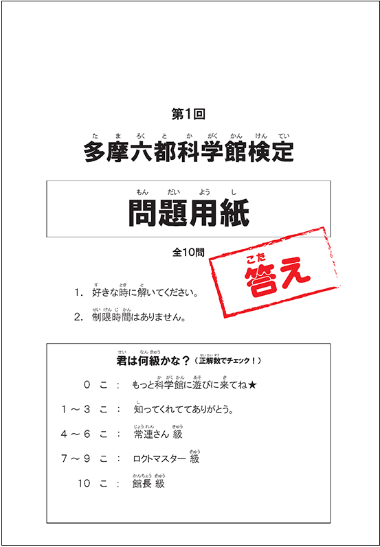 1か月ほど前のロクトリポートで「多摩六都科学館検定」の問題を投稿したのを覚えていますか?