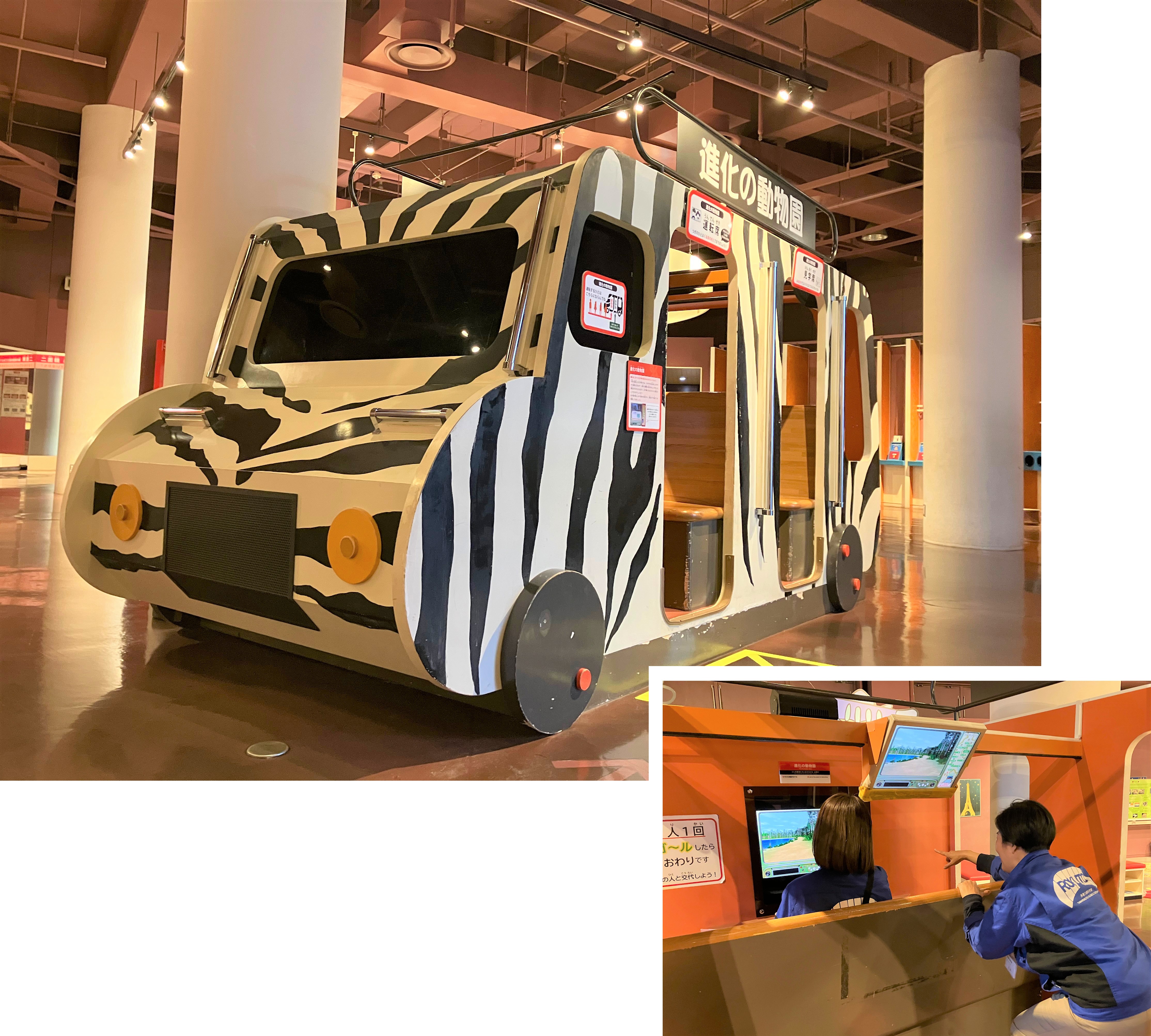ハンドルを操作しながら、生物の進化を学べる「進化の動物園」。