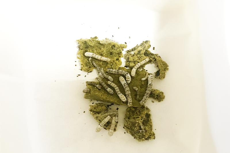 初めてのエサ <2020年5月13日 孵化2日目> つくったエサを一晩、冷蔵庫で冷やしました。 冷えても、かなり強烈な桑の...